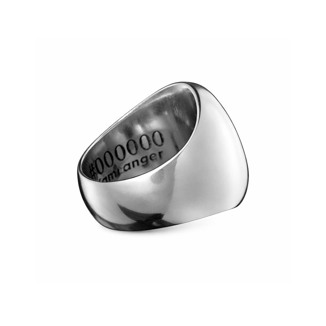 Its smooth contours and high-polish finish make it easy to wear daily, whether as a statement on its own or layered with other pieces. Subtle yet meaningful, this ring is made for those who move with intention.